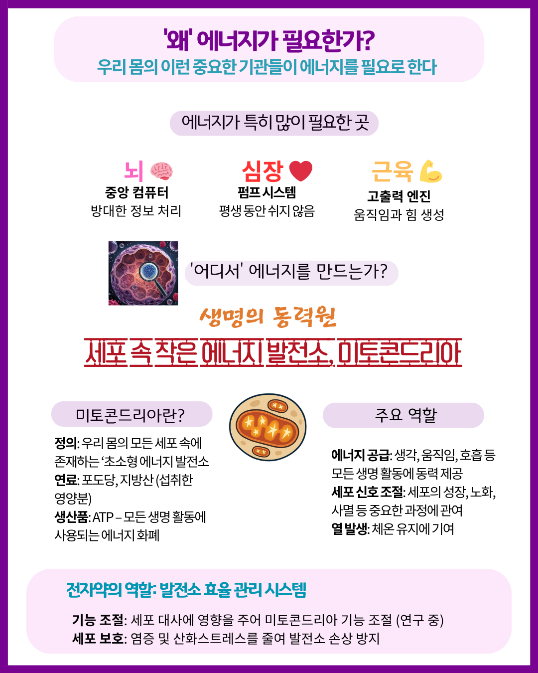 바로 우리 몸의 모든 세포 속에 존재하는 초소형 에너지 발전소, 미토콘드리아에서 옵니다.