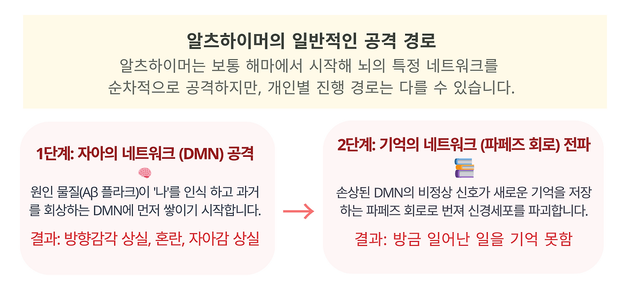 해마와 전전두엽 피질을 잇는 이 네트워크가 가장 먼저 흔들리고