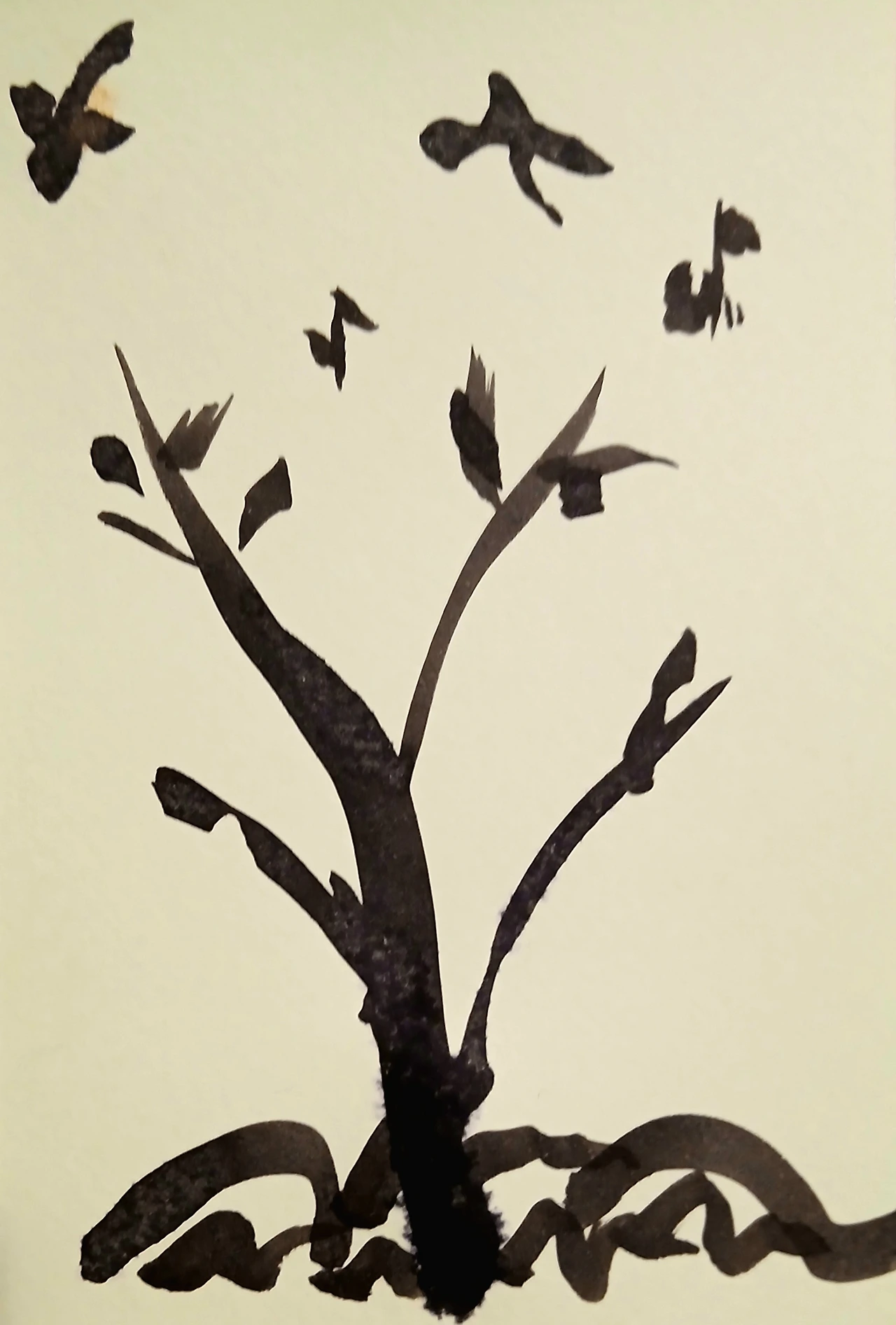 아빠가 쓰시던 먹물을 뿌렸다.