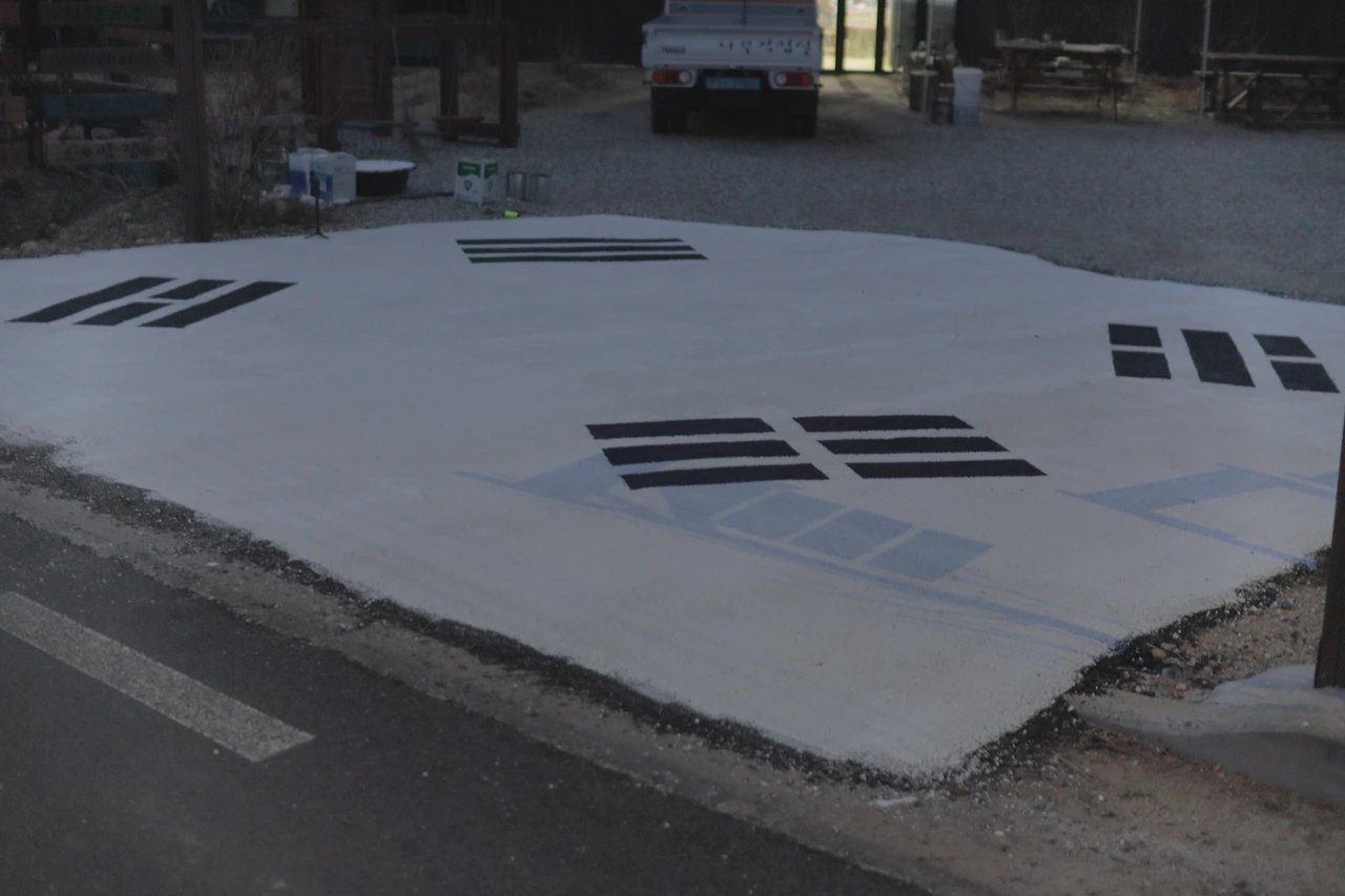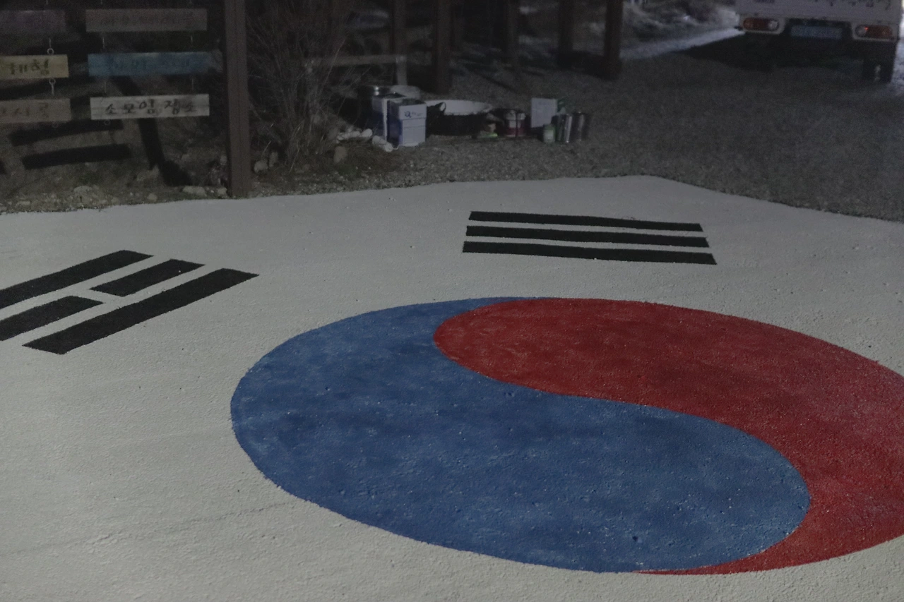 작업실 마당에도 큼지막한 태극기를 그렸다.
