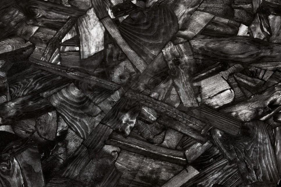 숯이 보여주는 검은색은 한 가지 색이 아니다. 오히려 '모든 색'을 포용하는 깊이를 말한다. 검은색 하나만 놓고 봐도 그렇다. 차가운 검정, 뜨거운 검정, 잿빛 검정, 회색빛 검정, 금속처럼 빛나는 검정… 검은색이 보여주는 다채로움을 잘 드러내는 작품은 '불로부터' 연작이다. 숯 표면을 광이 흐를 만큼 갈아 숯 단면을 드러낸 작품에서는 검은색이 각도에 따라 다른 빛을 낸다. 검은색은 '빛'까지도 흡수한 색인 셈이다.