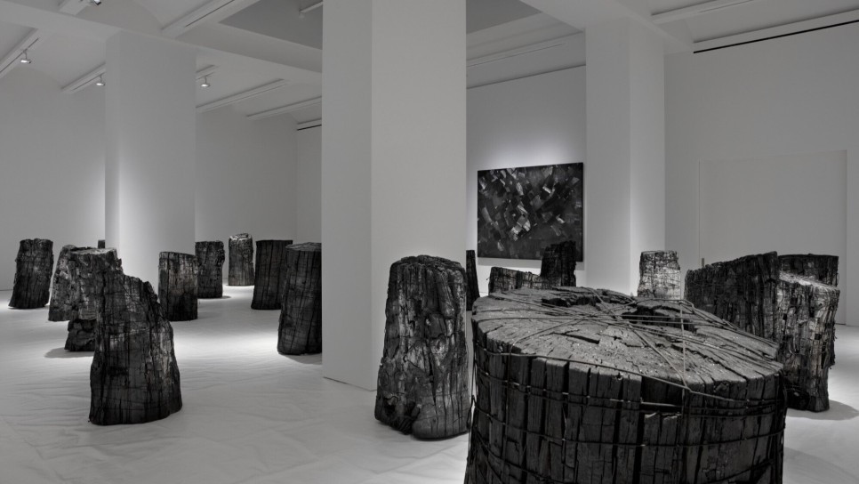 형색색의 유화 사이에서 검은 숯이 뿜는 우아함은 눈에 띈다. 그래서일까? 예술의 도시 파리에서 '숯'은 더 돋보이는 존재다. 실제로 2018년 이배 작가는 프랑스 정부에서 문화예술에 기여했다는 의미로 수여하는 '프랑스 문화예술 훈장 기사장(Chevalier des Arts et des Letter)'을 받았다. 2022 프리즈 서울에서는 생 로랑과 컬레버래이션을 진행하기도 했다. 1990년대부터 지금까지 유럽 미술계에 한국의 수묵화 정신을 알려왔던 이배. 그가 30년 동안이나 작품 세계의 중심으로 삼은 '숯'은 어떤 의미를 담고 있을까?