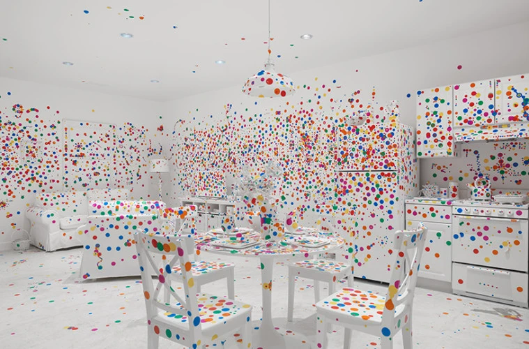 야요이 쿠사마의 의도는 '소멸의 방'이라는 관객 참여형 작품으로도 잘 드러난다. 무수한 점을 찍다보면 가운데에서 시작했든, 모서리에서 시작했든 나중에는 어디가 시작이고 끝인지 모르게 된다. 작은 귀퉁이에서 출발한 점은 점차 모든 사물과 세상을 뒤덮으며 기존에 있던 방의 모습을 소멸시킨다.