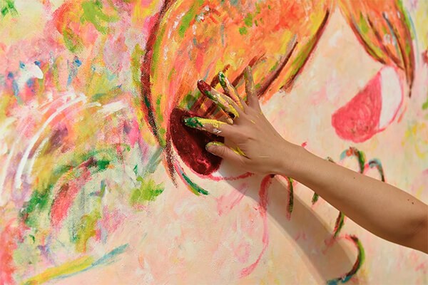 아티스트는 정규 예술 교육을 받은 적이 없어서 어떤 스승이나 유파에도 영향받았다고 보기 어렵다. 독학으로 그림을 시작한 것이다. 그래서일까? 전통적인 페인팅에서 보였던 명암, 원근법 등 방법론에 대한 강박은 찾아보기 어렵다. 붓이 아닌 맨손으로 채색하여, 별도의 스케치나 규칙도 없다. 정돈된 결보다는 손에서 뻗어나온 즉흥적이고 자유로운 선이 돋보인다. 아크릴 물감 특유의 덩어리진 질감과 함께 맨손이 지나간 흔적이 잘 드러난다. 생동감 넘치는 에너지가 느껴지는 까닭은 여기에 있다.
