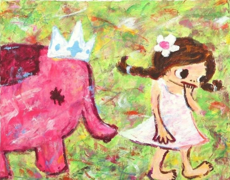 기쁨이, 슬픔이, 까칠이, 소심이…영화 '인사이드 아웃'(2015)에 등장했던 감정 캐릭터들이다. 이들 말고도 강렬한 인상을 남겼던 캐릭터는 분홍색 솜사탕 코끼리 '빙봉'이다. 동심을 자극하는 코끼리처럼 최근 미술계에도 어린 시절을 떠올리게 하는 화풍을 가진 아티스트가 있다. 바로 '아야코 록카쿠(Ayako Rokkaku, 1982~)'다. 록카쿠는 틀을 부순다. 그의 '독창성'은 마치 어린이가 그림을 그리는듯 자유롭다.