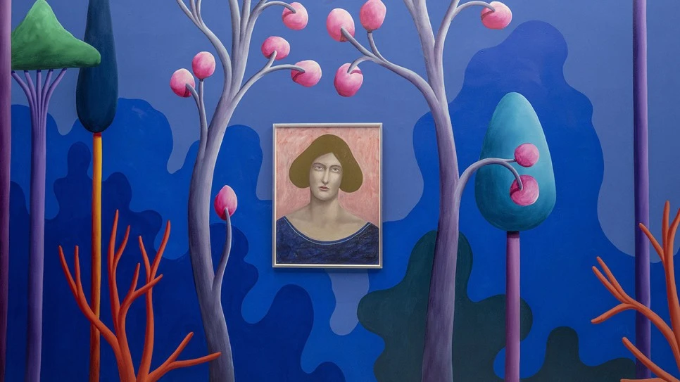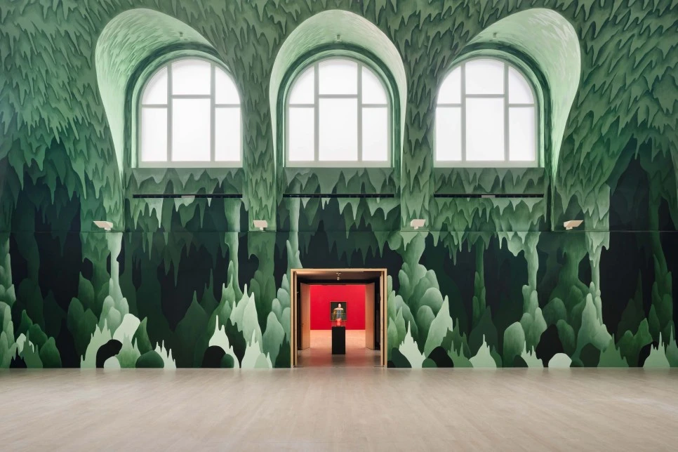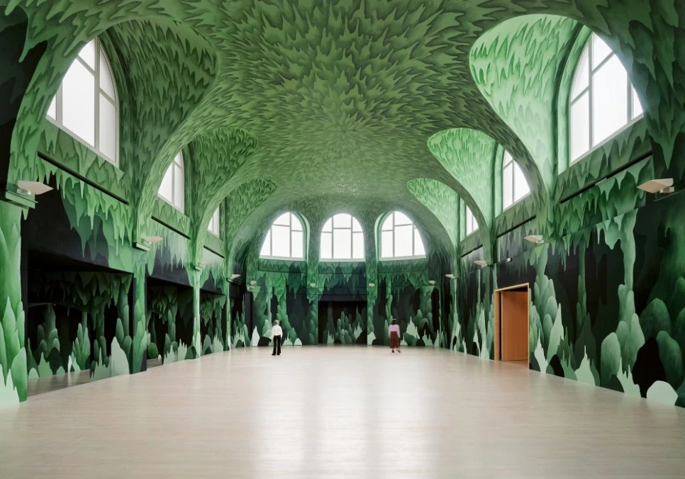 니콜라스 파티의 'Stage Fright'전. 2021년에 독일 하노버에 있는 케스트너 게젤샤프트(Kestner-Gesellschaft)에서 개최되었다. 파티는 이곳에 대형 돔형의 벽과 천장에 그림을 그려 동굴을 만들었다. ⓒkestnergesellschaft