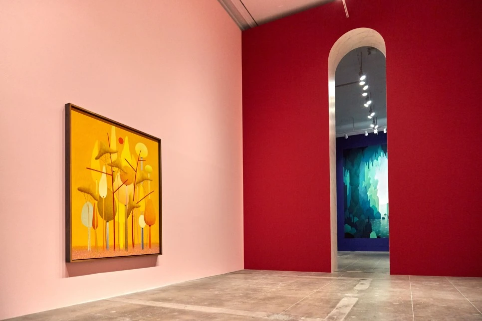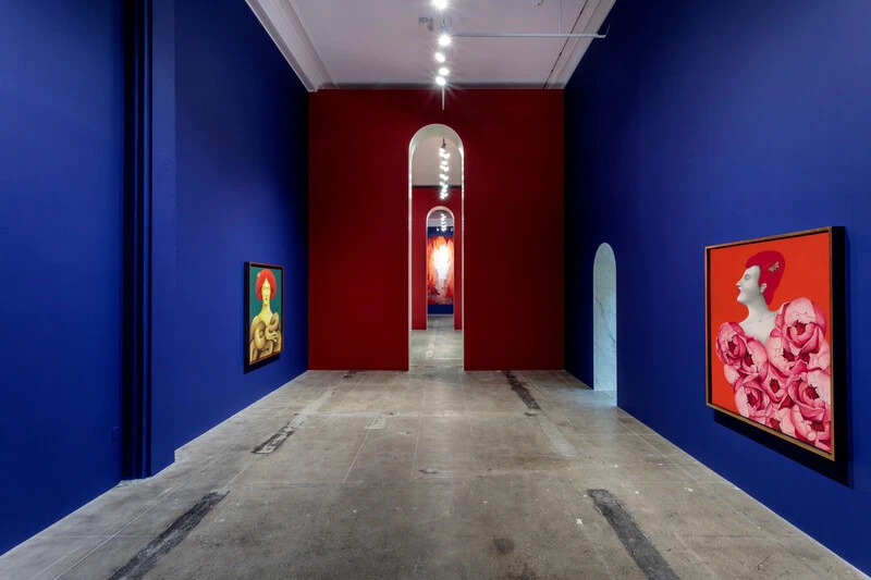하우저 앤 워스와 처음으로 함께한 전시 프로젝트 '니콜라스 파티: Sottobosco'전(2020) .하우저 앤 워스 로스 앤젤레스에서 개최되었다. 아치형으로 구성한 벽과 다채로운 작품이 걸려 있다. ⓒJoshua White, ⓒAustin Radcliffe