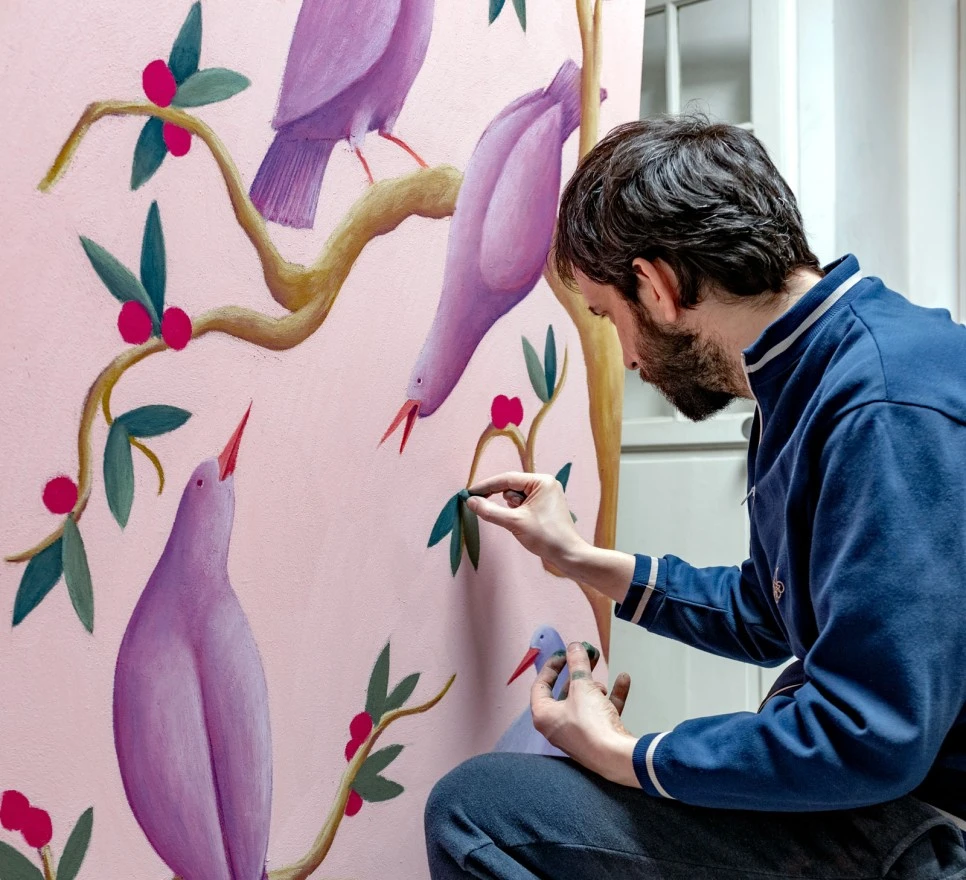 니콜라스 파티는 파스텔로 조각같이 밀도 높은 부피감을 표현하는데 독보적인 아티스트다. 스위스 로잔에서 태어나 최근에는 뉴욕과 브뤼셀을 기반으로 활동한다. 1980년 출생한 비교적 젊은 아티스트인데도 전설적인 비디오 아티스트인 피필로티 리스트(Pipilotti Rist, 1962~), 루이뷔통과 컬래버레이션한 우르스 피셔(Urs Fischer, 1973~) 등 거장과 함께 스위스를 대표하는 아티스트로 언급된다.