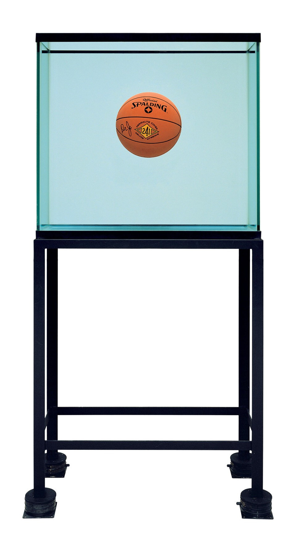 정확히 수조 정 가운데에 스팔딩 농구공을 띄웠다, Jeff Koons, 'One ball Total Equilibrium Tank(Spalding Dr. J 241 Series)'(1985), ⓒ Jeff Koons