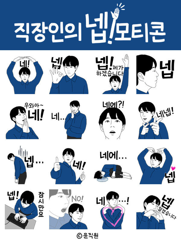 퇴사 전부터 열심히 준비해 온 <직장인의 넵!모티콘>이 드디어 카카오톡 이모티콘 스토어에 등록되었습니다.