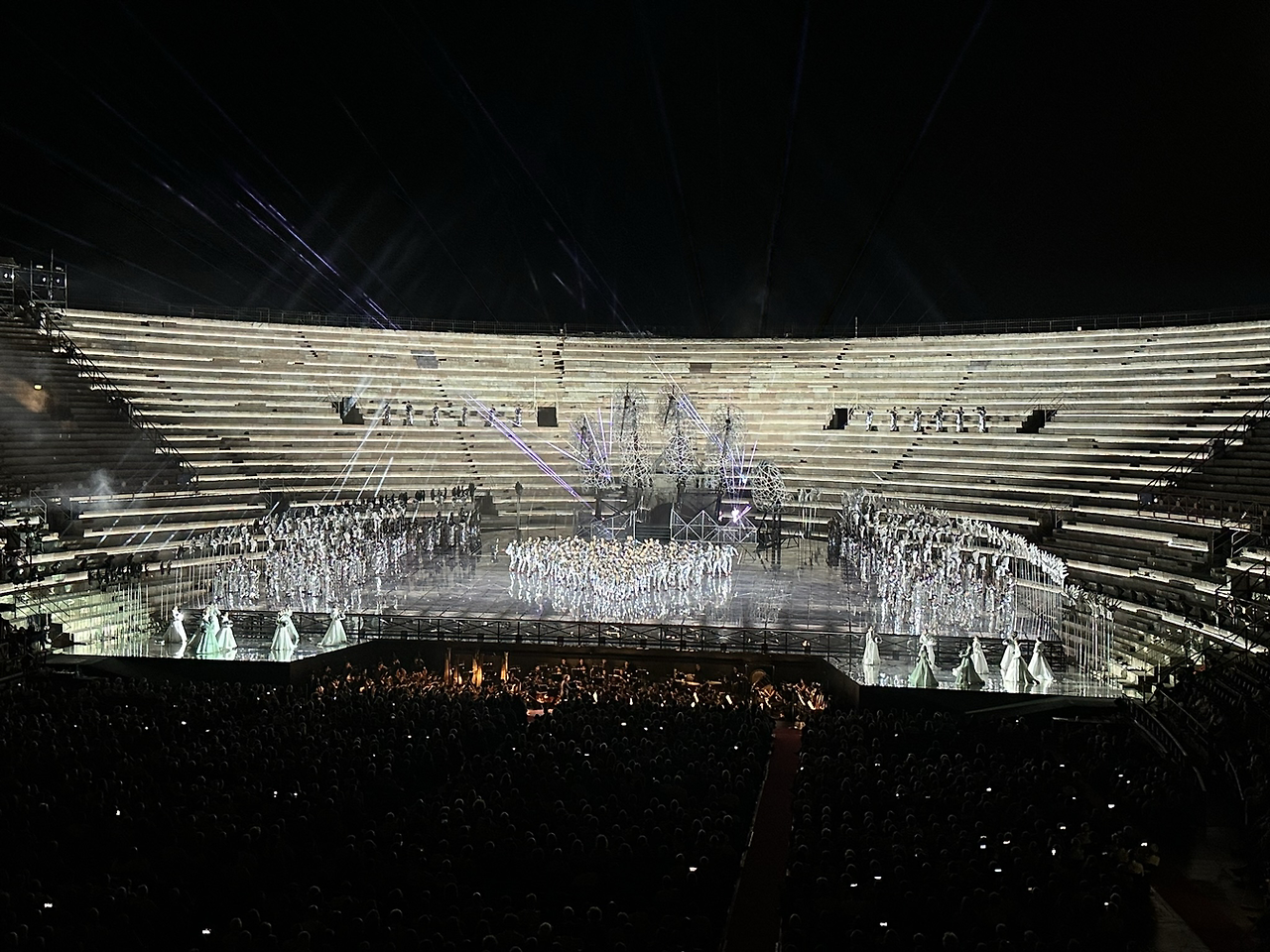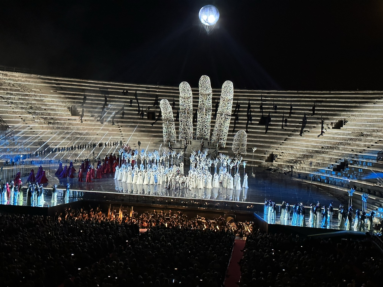 한창 무더운 여름이라 베로나의 태양은 생각보다 길었다. 서서히 해가 가라앉는 걸 느끼며 드디어 아레나 원형극장으로 입성했다. 내 자리는 무대를 관람하기에 괜찮은 자리였지만 바로 뒤에 출입구와 통로가 있어서 시끄럽고 거슬렸다. 관크(공연장이나 영화관 등 공공장소에서 다른 관객의 관람을 방해하는 행위)는 전세계 어디나 예외가 없는가 보았다. 하지만 베로나 오페라 페스티벌을 보기 위해 전세계에서 방문한 관객들이 있는 만큼 수천 명의 사람들이 모여있는 원형극장 내 분위기가 너무 근사했다. 평소 관크에 예민한데도 불구하고 모든 걸 다 품을 수 있을 것만 같은 밤이었다. 이날 아이다 역은 러시아 출신의 세계적인 소프라노인 안나 넵트렙코 Anna Netrebko였다. 넵트렙코의 노래를 실연으로 듣다니.. 특히 올해는 아레나 오페라 페스티벌 100주년을 맞는 기념적인 해였다.