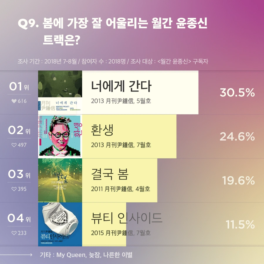 Q9. 봄에 가장 잘 어울리는 월간 윤종신 트랙은?