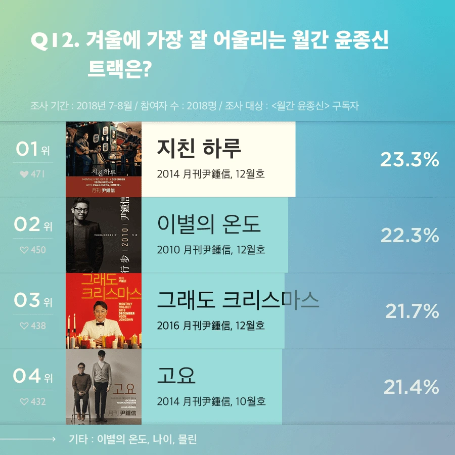 Q12.겨울에 가장 잘 어울리는 월간 윤종신 트랙은?