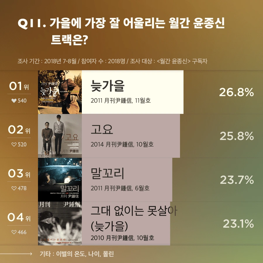 Q11. 가을에 가장 잘 어울리는 월간 윤종신 트랙은?