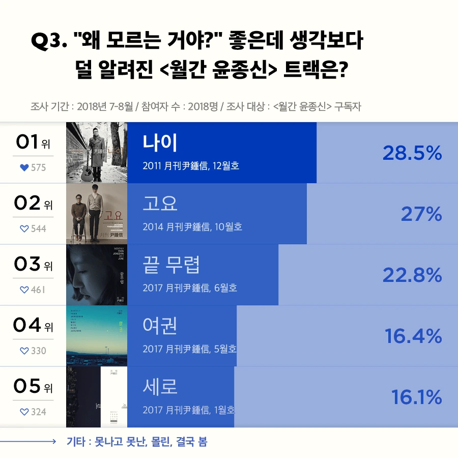 Q3. “왜 모르는 거야?” 좋은데 생각보다 덜 알려진 <월간 윤종신> 트랙은?