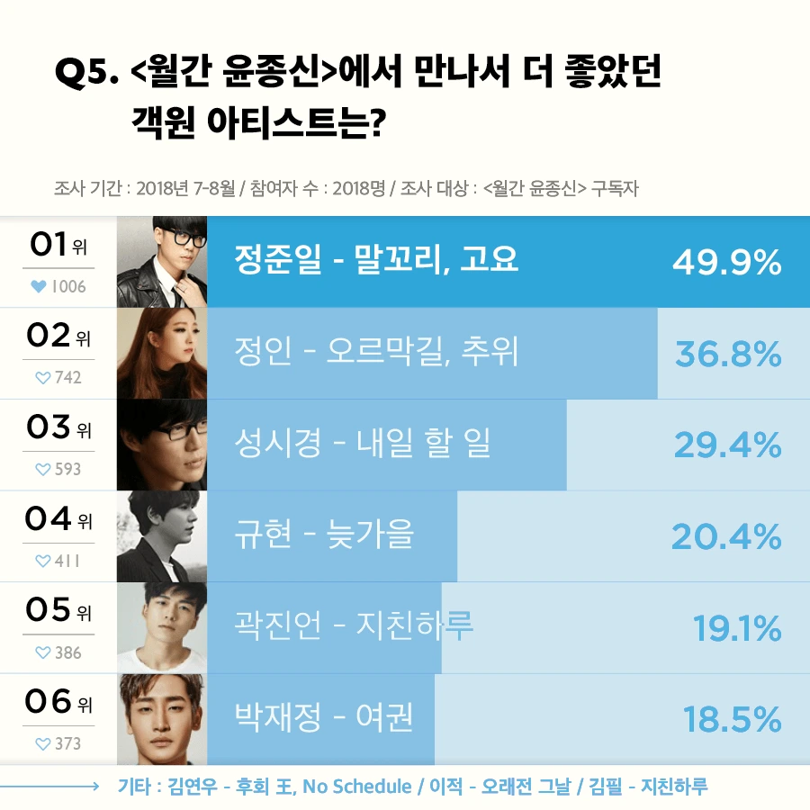 Q5. <월간 윤종신>에서 만나서 더 좋았던 객원 아티스트는?