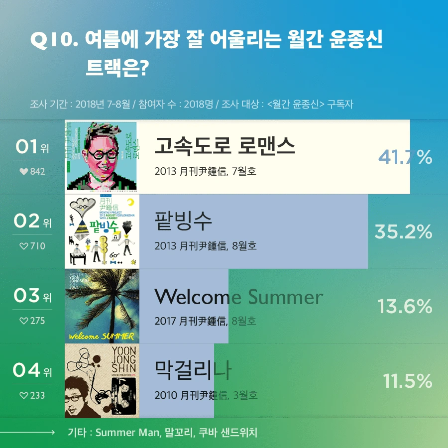 Q10. 여름에 가장 잘 어울리는 월간 윤종신 트랙은?