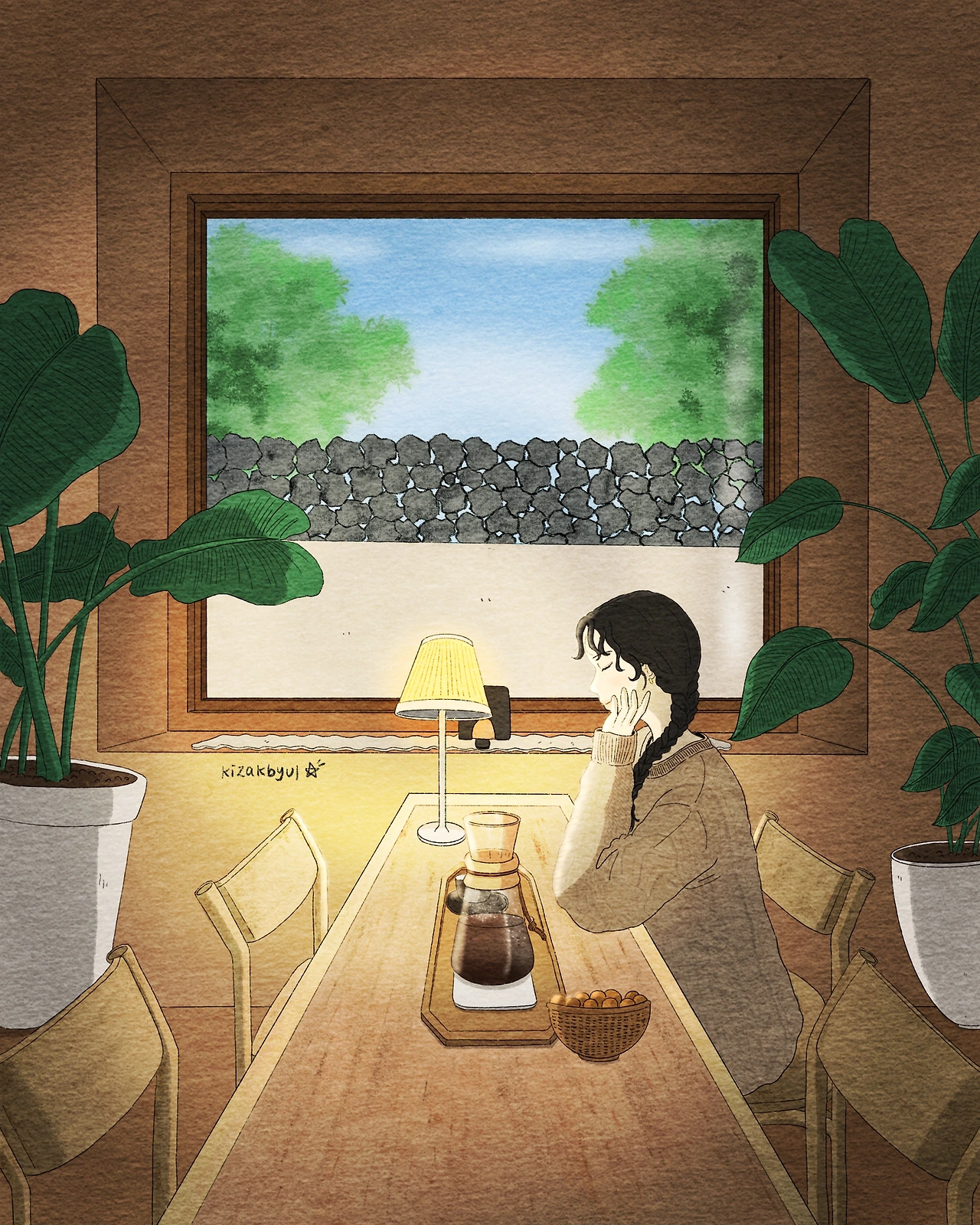 카페가 될 수 있었지만 그 카페의 이름을 알고 문을열어 커피를 주문하여 마시고 그 카페를 배경으로 그림을 그렸으니까. 그 때 그 카페가 내게 준 아늑함과 따스함 그리고 편안함을 그림으로 남겨두기 위해.