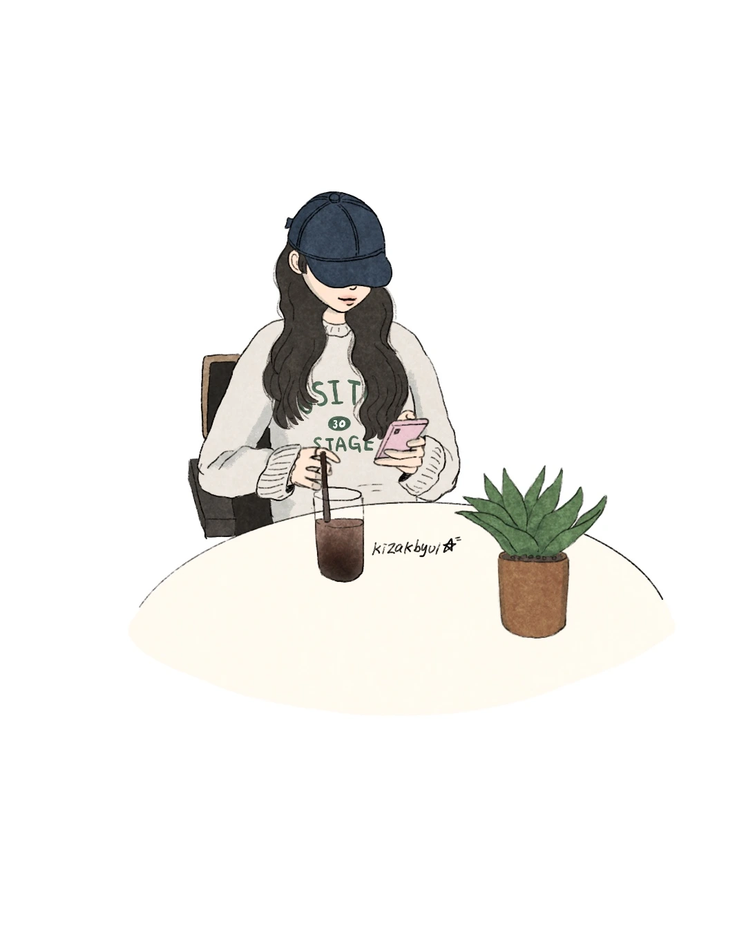 어떤 약속도 없지만 기분을 내러 잠시 근처의 카페로 갈 때 편안한 맨투맨 옷을 입고 감지 않은 머리를 가리려 캡모자를 눌러쓴다.