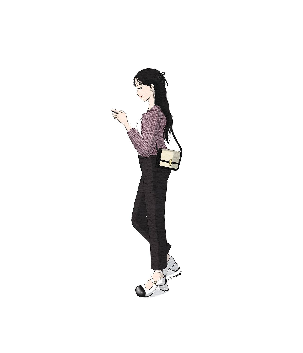 자세의 모티브가 되는 사람의 사진을 찾고 아이쇼핑하다가 눈에 띈 옷을 내 그림의 주인공에게 입혔다. 트위드자켓에 검은색 바지. 평범하고 흔히 볼 수 있는 패션이겠지만 너무나도 패셔너블하게 느껴졌다. 계절상 트위드를 입기에는 너무 추워서 그저 웹상에서 보고만 있는 옷을 내 그림의 주인공에게 입히면서 소소하게 대리만족을 했다.