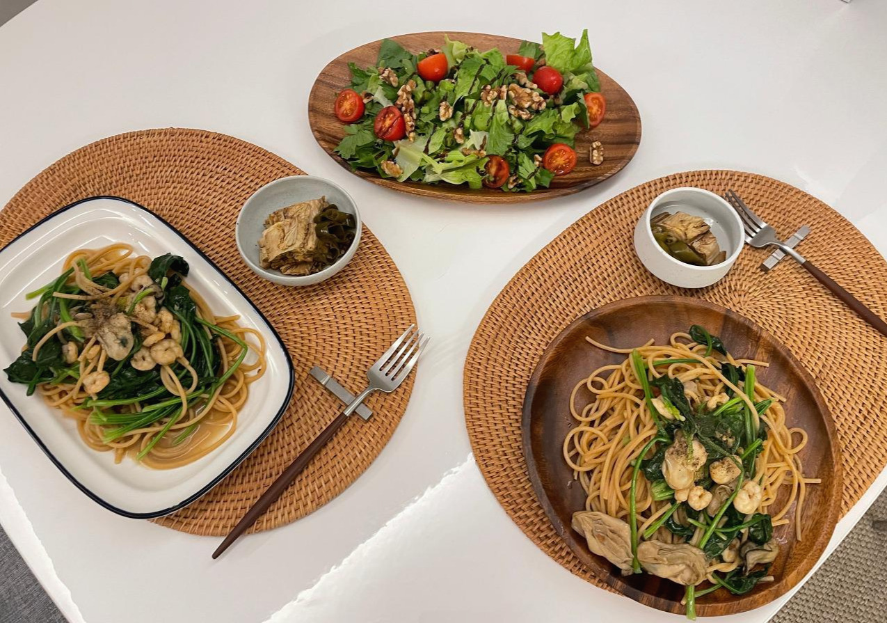 오늘은 제철로 접어든 굴과 포항초 시금치를 넣은 굴시금치파스타 밥상이다. 두 번째 시도하는 통밀 파스타면은 일반 파스타면에 비해 여전히 뚝뚝 끊기는 식감이지만 지난번보다 조금 더 푹 익히니 그만의 맛이 있어 좋다. 영양만점 시금치는 재래종 포항초가 나오는 계절엔 더 많이 먹어줘야 한다. 그래서 욕심내고 많이 넣다 보니 파스타면이 반, 시금치가 반이다. 굴 역시 짧은 제철 동안 즐겨야 하는 식재료. 제철에 나는 음식을 많이 먹어야 몸도 더 튼튼해진다.