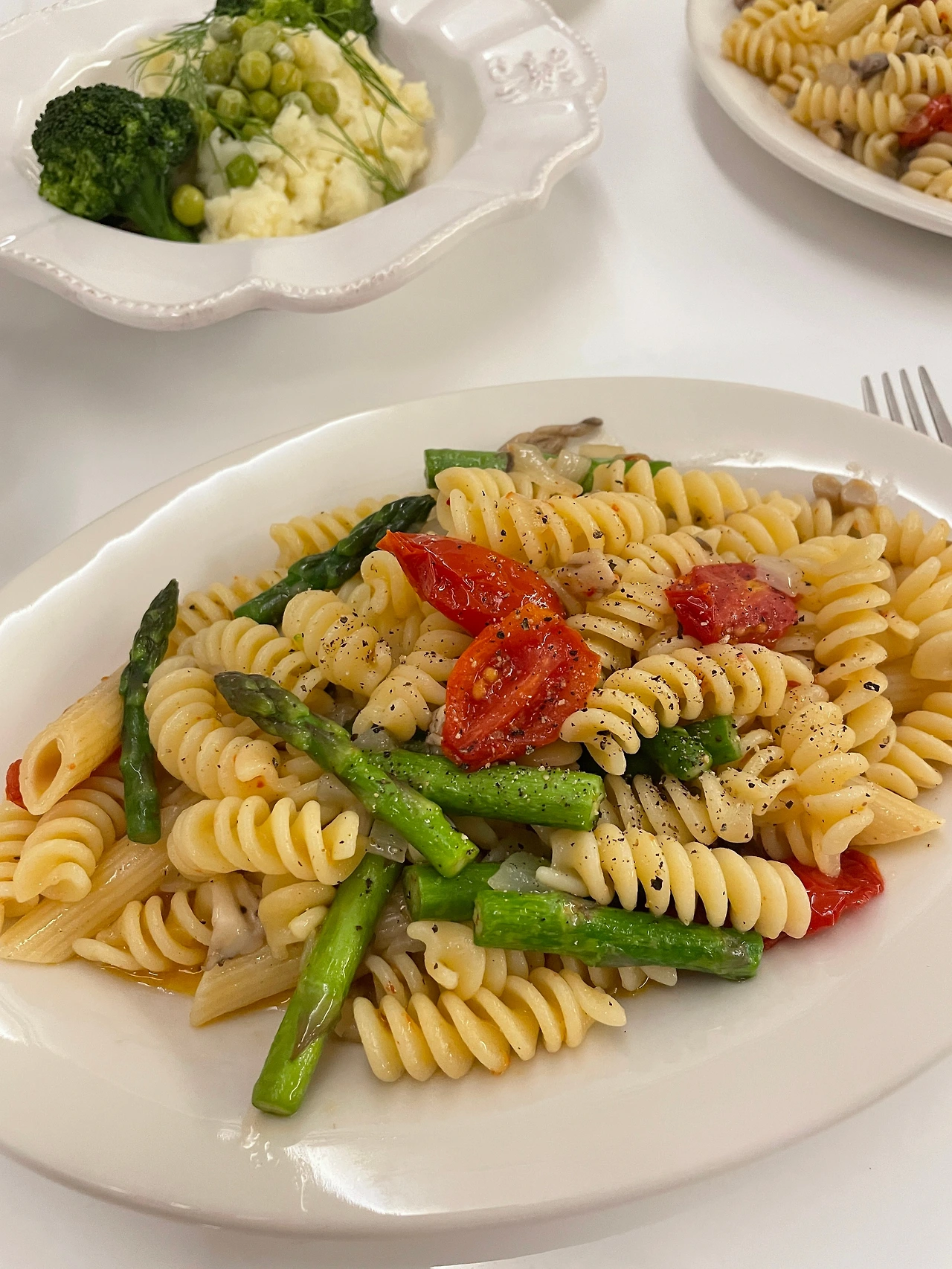 양파를 충분히 볶고 버섯과 아스파라거스로 맛과 영양을 더하고, 넉넉한 면수에 엔초비만으로 살짝 부족한 간은 멸치액젓을 조금 추가하면 우리 입맛에 딱 맞는 맛있는 파스타가 완성된다.