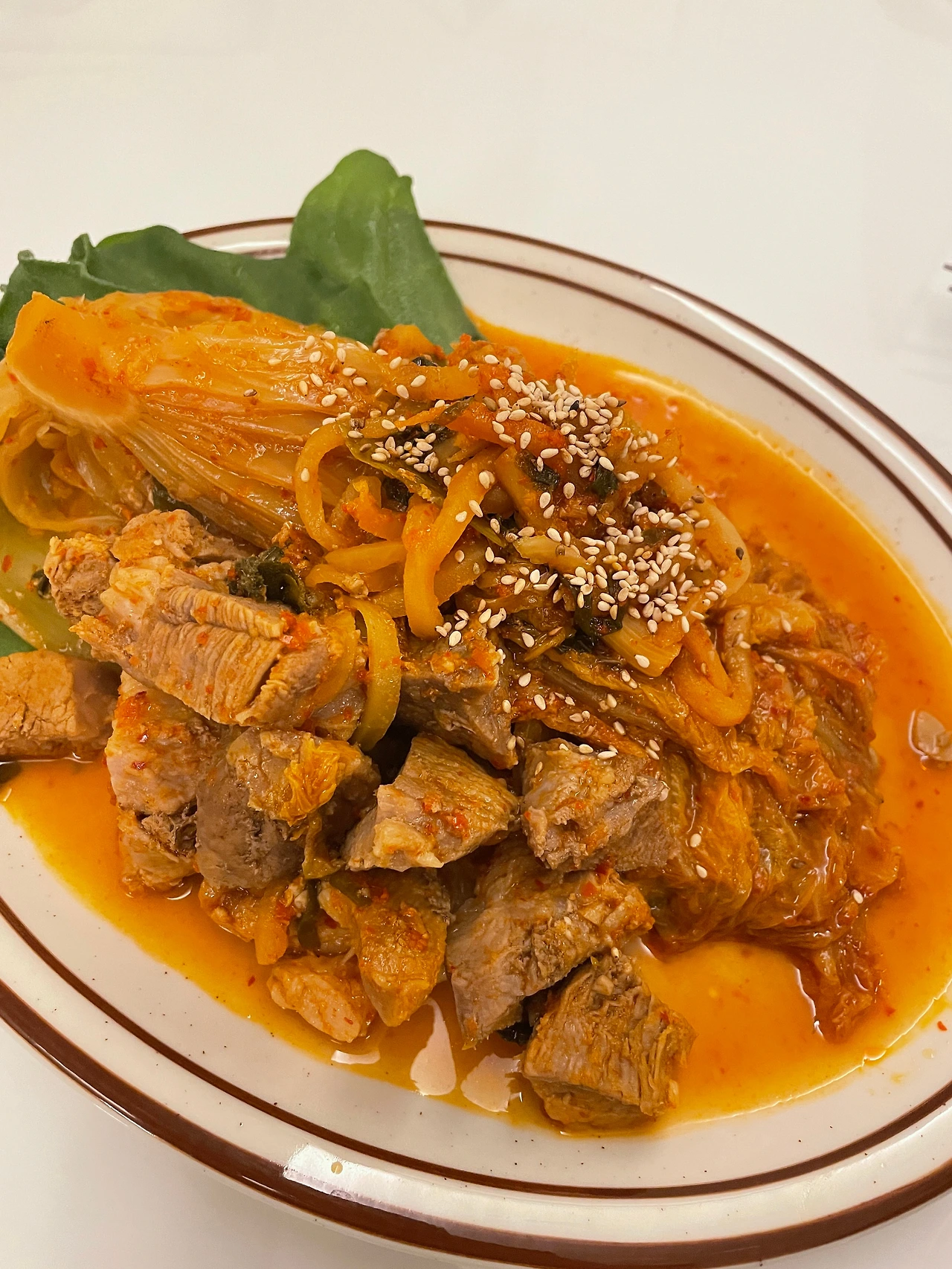 한국인의 소울푸드 중에 10위 안에 들 것 같은 묵은지 김치찜. 김치찌개와는 다른 느낌의 소울푸드다. 김치찌개는 뜨겁고 시원한 국물 맛으로 먹는다면 김치찜은 묵은지의 새콤함과 부드러운 고기 맛으로 먹는다.