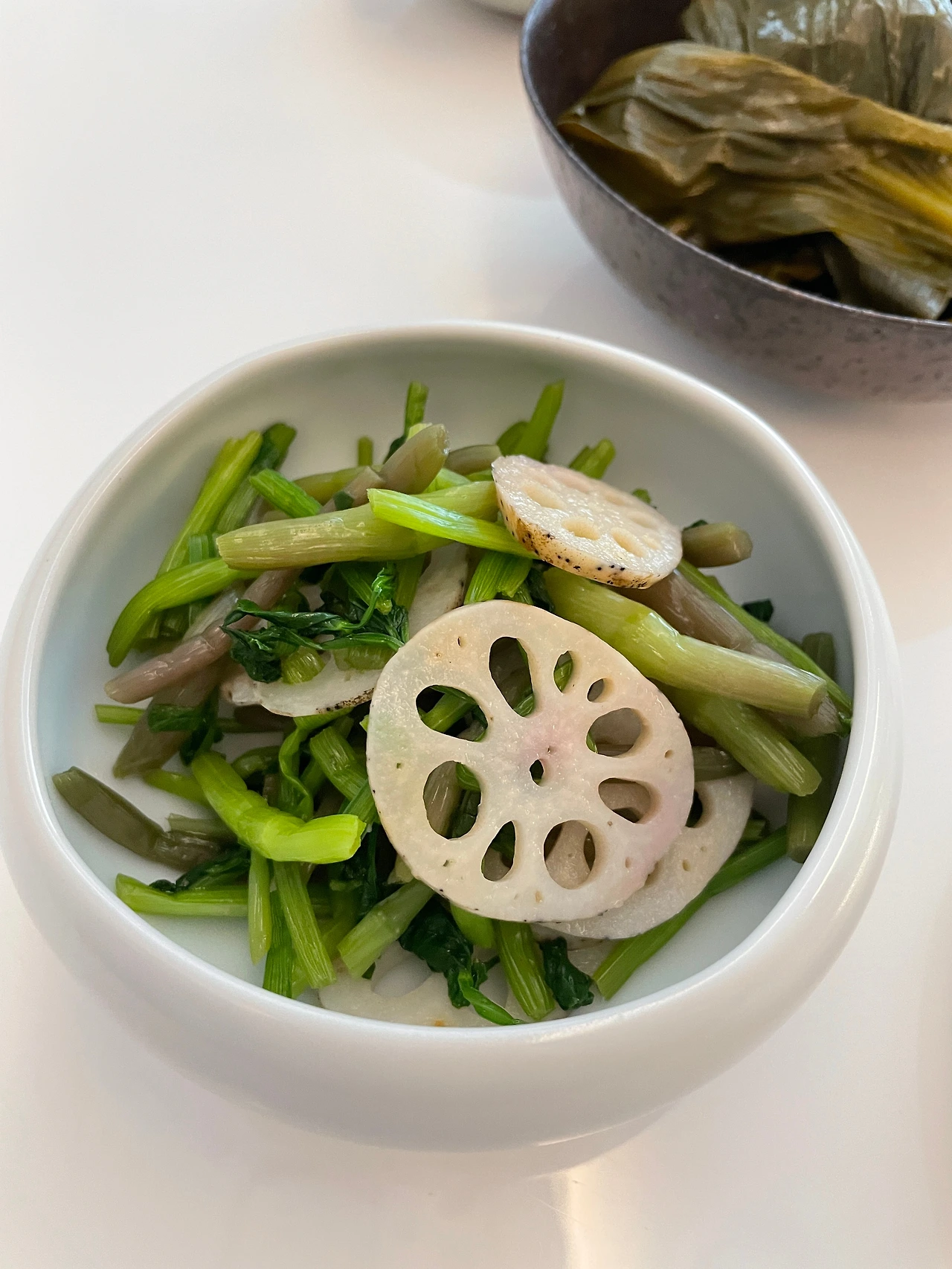 내 주위에는(정확히는 내가 SNS에서 팔로잉하는 사람들) 어쩌다 보니 채식요리를 하는 사람들이 많다. 올 초 절기 달력을 걸어두고 절기별로 나오는 식재료를 정리해보자 마음먹었지만 굳이 내가 정리하지 않아도 내가 팔로잉하고 있는 사람들이 제철 식재료를 매일매일 알려준다. 나의 피드에는 초록 초록한 봄나물이 한창이다. 여러 가지 봄나물 중에도 나는 봄이면 미나리가 가장 좋더라. 이 푸릇한 향을 대체할 수 있는 봄나물이 무엇이 있을까. 미나리는 살짝 데쳐 간장과 참기름에 무쳐내기만 하면 된다. 오늘은 연근을 얇게 썰어 영양과 식감을 더했다. 위에 좋은 연근은 간장에만 졸이지 말고 데치거나 쪄서 연근 그대로의 맛을 즐기며 먹으면 좋다.
