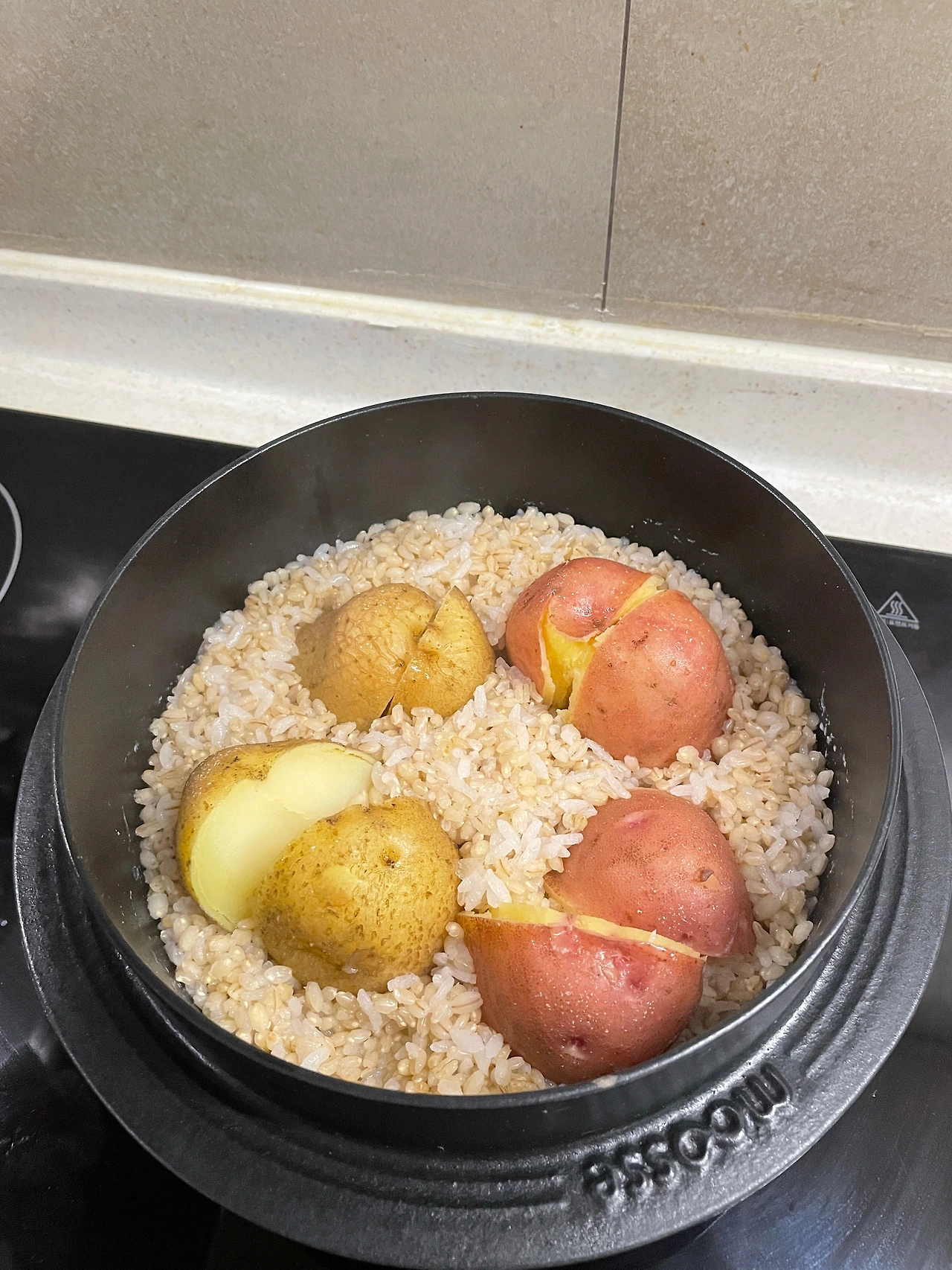 고은정 선생님 책 '밥을 짓다 사람을 만나다' 여름 편에 있던 감자보리밥. 어렸을 때 할머니가 해주셨던 그 맛이다. 탱글탱글하게 씹히는 보리밥에 고소하게 으깨진 감자. 아주 맛있는 솥밥이라기보다는 옛날이 생각나는 맛이다. 맛있게 끓인 된장찌개가 필수다.