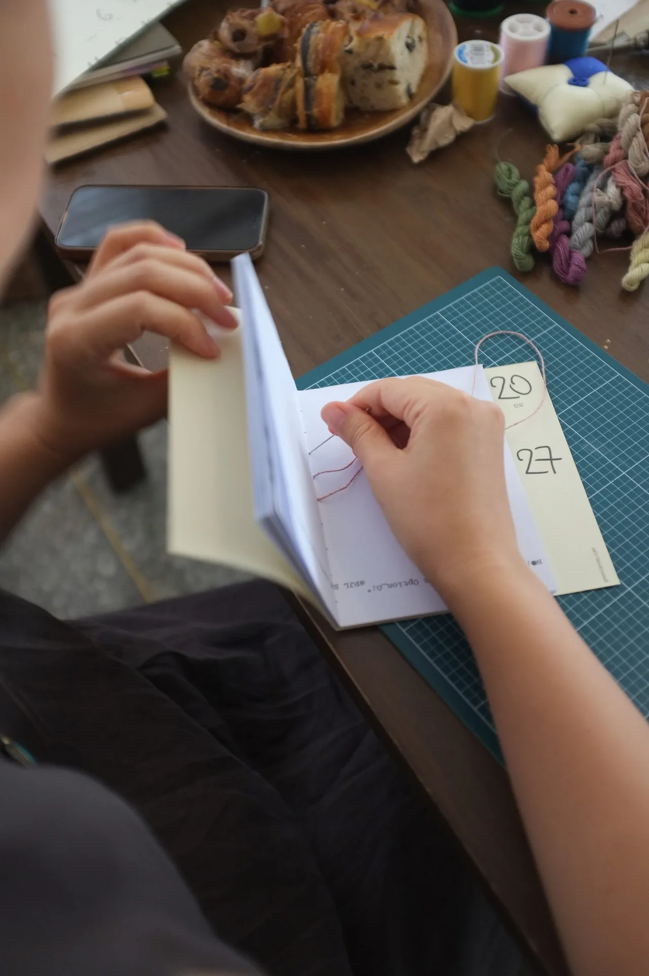 평소 수첩에 메모하는 것을 좋아해서 일 년이면 상당 양의 수첩을 쓰고 있던 나는 평소 현아님의 공책 만들기가 무척 궁금했다. 다행히 지인분들에게 만드는 방법을 알려주었다는 포스팅을 보고 연락을 드려 직접 배워볼 기회가 생긴 것이다. 제책 작업을 한번 해봐서 그런지 만드는 방법은 생각보다 수월했다. 좀 더 서걱거리는 필기감이 좋은 느낌의 내지로 만들어보고 싶은 욕심까지 생기며, 이제 비닐 포장이 된 수첩을 사지 않아도 된다는 생각이 들어 기뻤다.