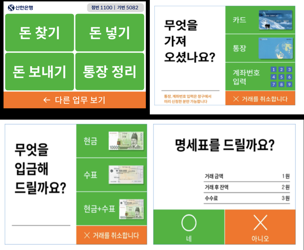 신한은행 ATM 기기가 몇십 년 만에 직관적인 UI로 변경되었다고 한다. 처음에는 익숙하지 않은 디자인에 당황스러웠지만 이용에 불편함이 없었다. 글씨도 커지고 메뉴도 단순화되었다. 그리고 얼마나 쉬운가? '입금', '출금'이 아닌 '돈 찾기', '돈 넣기'. 조금만 더 이용자(시민)의 입장에서 고민하는 정책이 나왔으면 좋겠다.