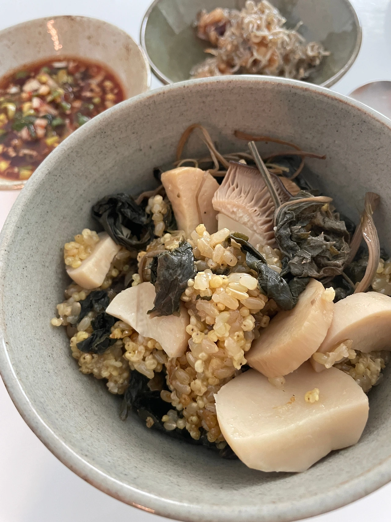 묵은 나물을 무쳐서 먹는 방법 말고도 솥밥에 넣어 먹는 방법이 있다. 적당히 불린 나물을 따로 조리하기보다는 소금, 간장을 올려서 밥을 하면 된다. 냉장고에 있는 자투리 버섯도 추가하면 더욱 맛이 좋다. 양념간장에 슥슥 비벼 구운 김에 올려서 먹으면 영양과 맛 모두 최고다.