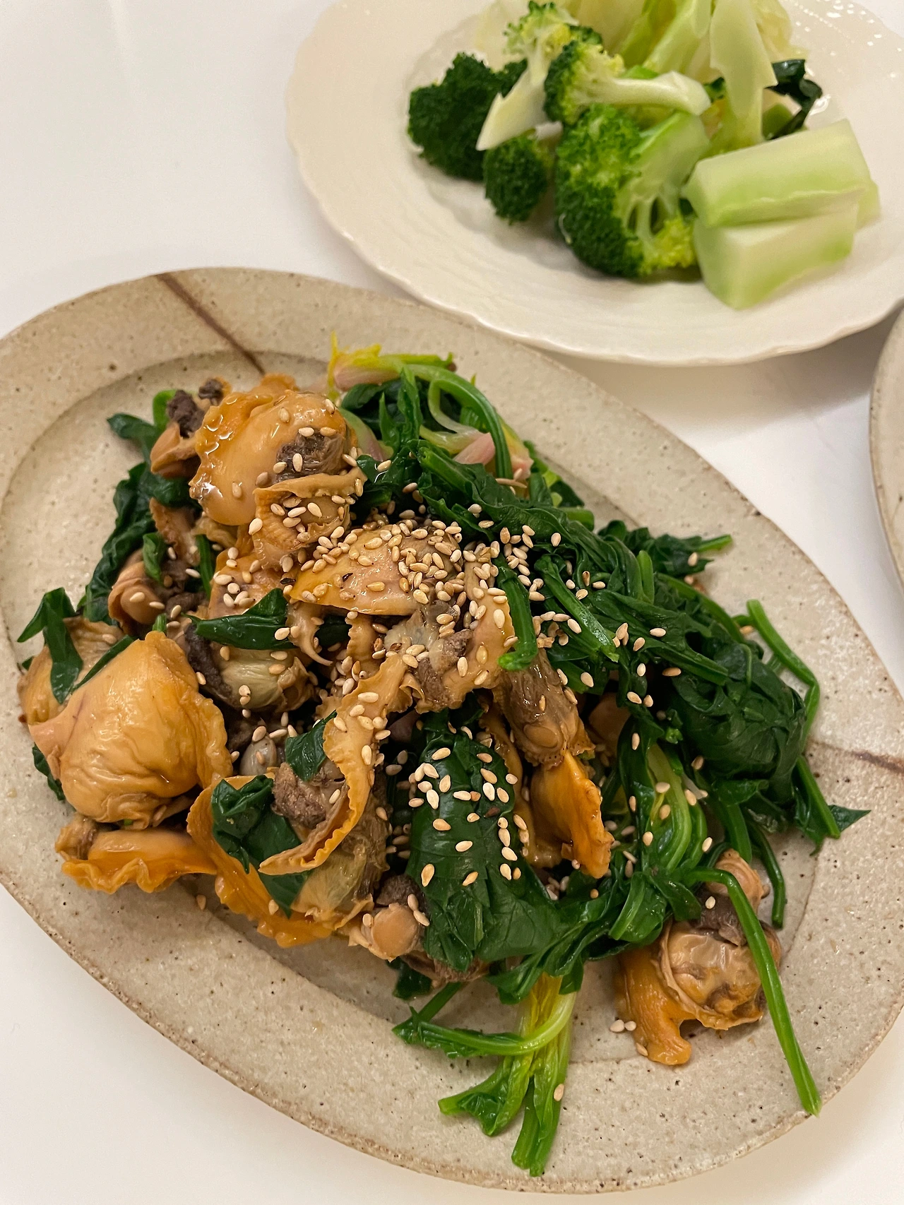 그래서인지 몇 해 전부터 꼬막비빔밥이 유행처럼 번졌다. 고추장과 참기름 맛으로 먹는 꼬막비빔밥. 나는 조금 더 건강하게 먹기 위해 시금치와 함께 무침으로 만들어 보았다. 향긋한 간장만으로도 맛이 좋다.