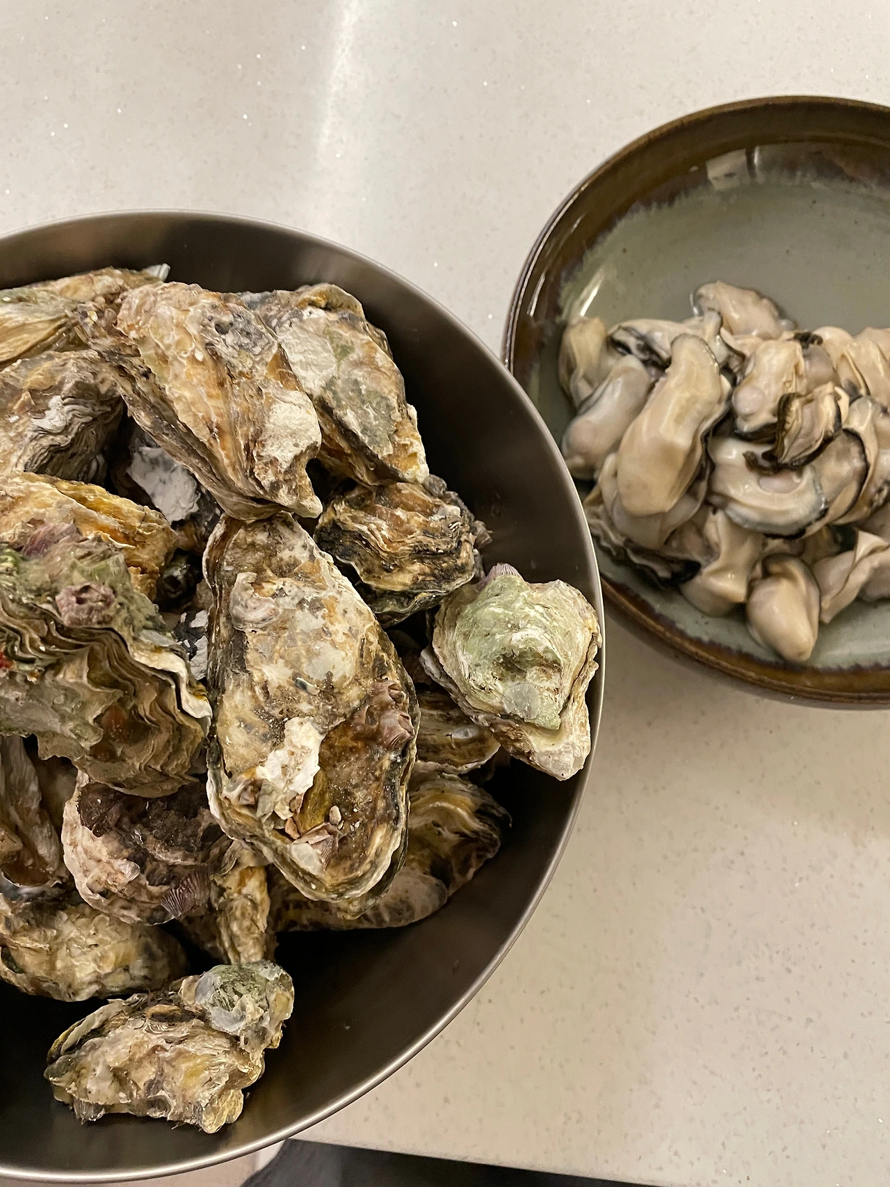 여러 번에 나눠 찜기에 찌고, 까고 하니 오후 시간이 훌쩍 가버렸다. EBS 극한직업에 나오던 굴 공장이 생각났다. 그래도 올 겨울 냉동실에 두고두고 굴밥 해먹을 생각에 든든해졌다.