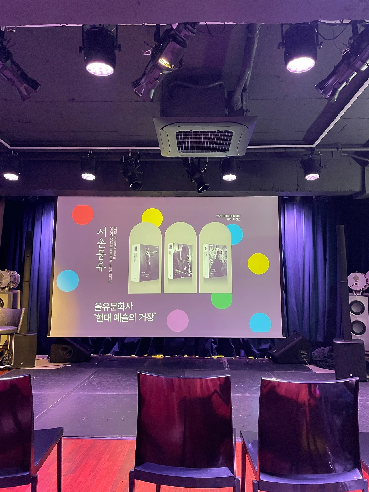 몇 달 전 우연히 크레디아와 을유문화사가 함께 진행하는 <서촌풍류 - 현대 예술의 거장>이라는 흥미로운 렉처시리즈를 알게 되었다. 시리즈 전체를 다 듣기엔 어려운 주제 같아 보여, 고심 끝에 어떤 예술가를 다루는 지도 모르고 윤혜정 작가님의 강연을 신청해 두었다. 서촌 크레디아클래식클럽 스튜디오 진행된 강연은 공연장 느낌의 분위기 있는 지하 공간에서 진행되는데, 몰입도를 더욱 높여주는 공간이었다. 클래식 공연도 자주 진행되는 것 같아 공연을 보러 한 번 찾아가도 좋을 것 같다.