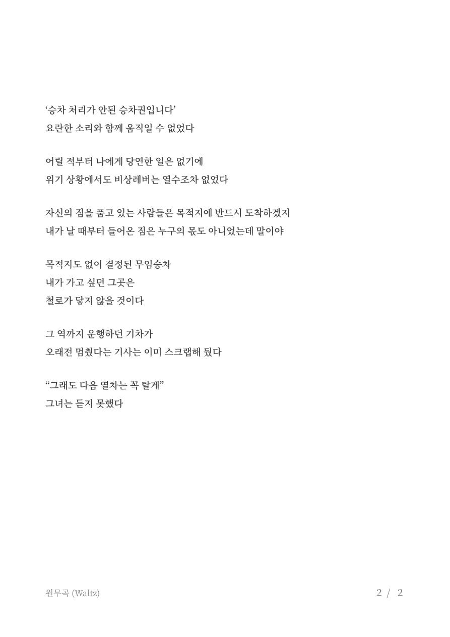 ‘목적지가 얼마 남지 않은 남자가 방금 온 열차마저 떠나보내다’