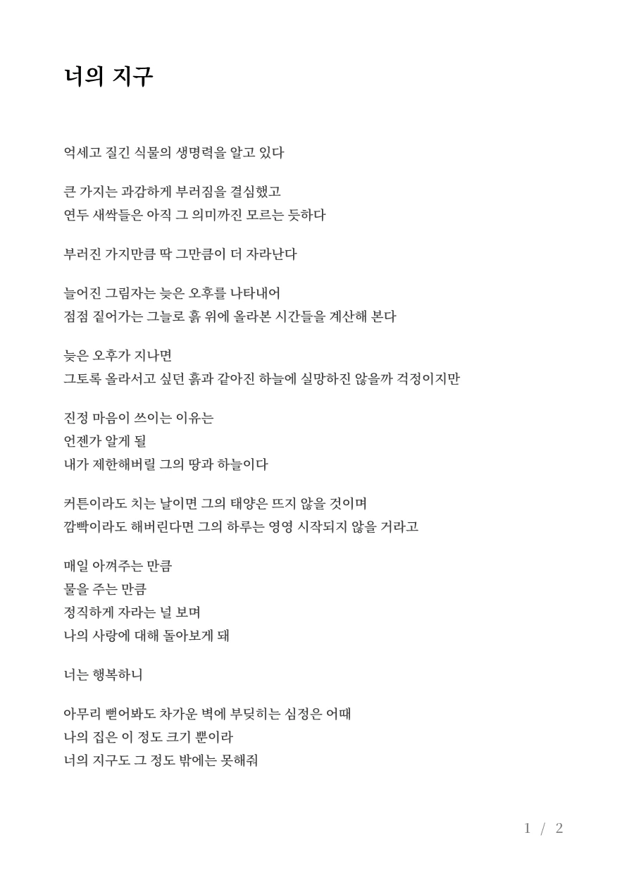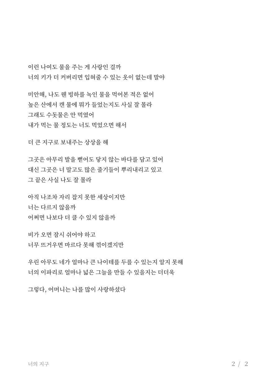 너의 이파리로 얼마나 넓은 그늘을 만들 수 있을지는 더더욱