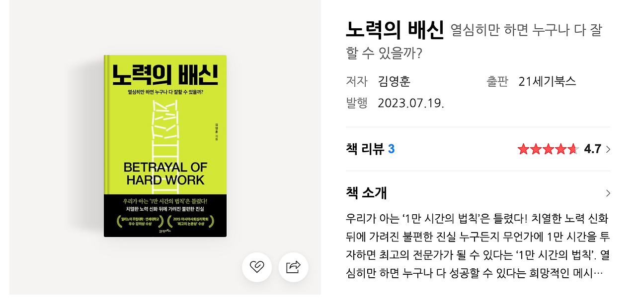 최근 연세대학교 심리학과 김영훈 교수님의 <노력의 배신>을 읽었는데 깊은 공감이 되었다.