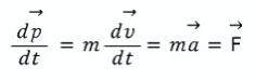 [운동량의 시간 미분은 질량 곱하기 '속도의 시간 미분'이다.]