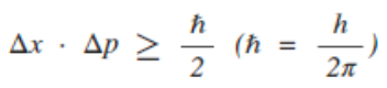 [위치의 변화량 곱하기 운동량의 변화량을 한 것은 이분의 ‘에이치 바’ 보다 크거나 같다.]
