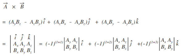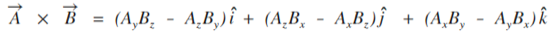 번역하면, [두 벡터의 벡터 곱은 위에 보이는 것과 같이 계산한다.]