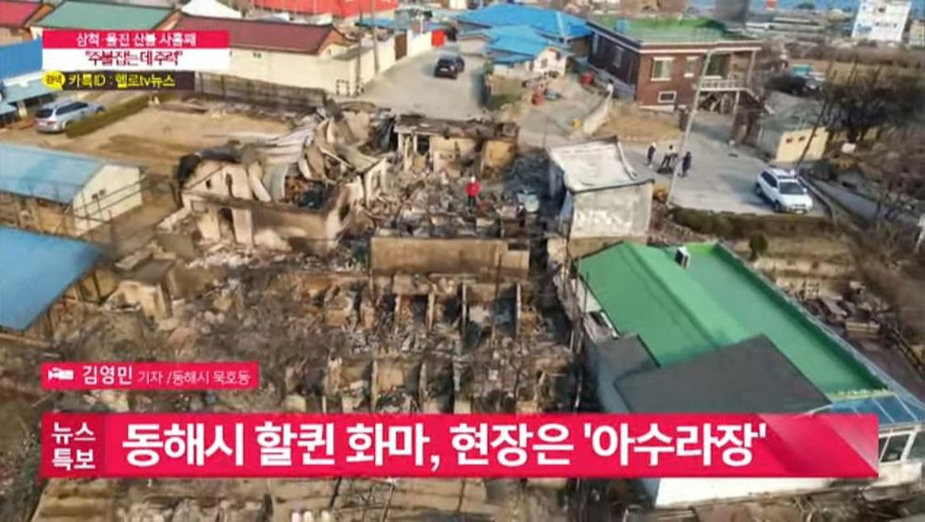 폭격을 맞은 듯 맥없이 쓰러져버린 주택, 앙상한 콘크리트 구조물만 남긴 채 폭삭 주저앉은 창고가 여기저기 즐비했다. 강릉시 옥계면 남양리의 한 주택은 벽돌이 모두 떨어져 나갔고 유리병과 부탄가스가 시커멓게 그을린 채 어지럽게 나뒹굴고 있었다. 덩그러니 널브러진 유리컵과 그릇, 조리 기구들만이 그곳이 주방이었음을 말해줄 뿐이었다. 삼척시 원덕읍 월천 2리 이장은 “남아 있는 게 하나도 없다. 큰 나무들만 앙상하게 서 있을 뿐이다. 어떻게 복구할지 막막하다”며 한숨을 내쉬었다.