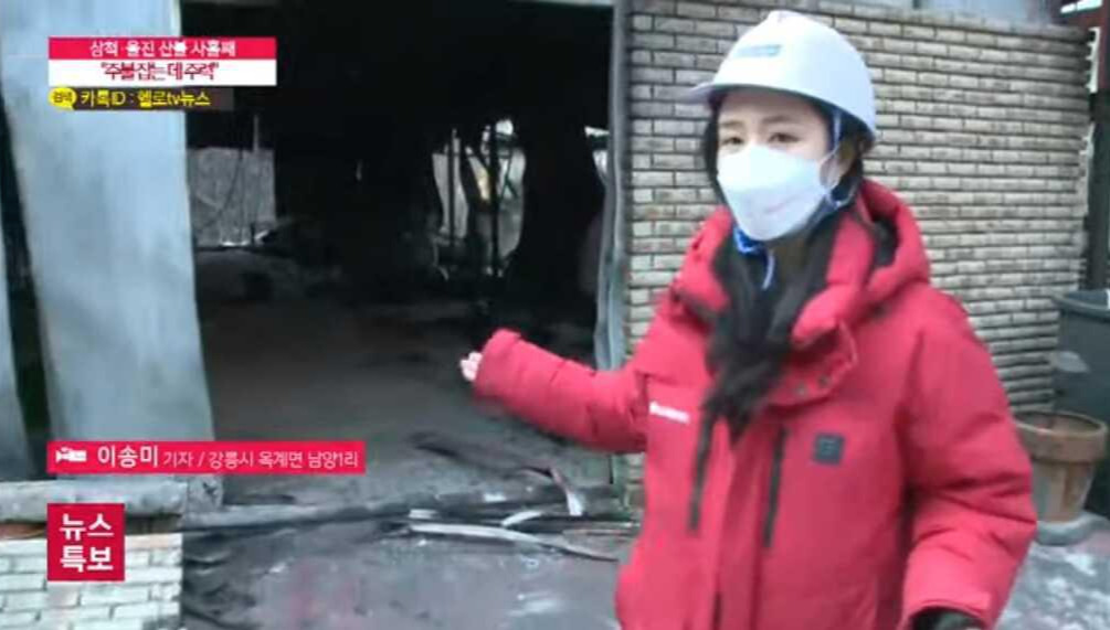 강릉에서 출발한 취재팀이 삼척에 도착한 직후인 밤 8시 50분 첫 특보가 시작되었다. 어둠 속 시뻘건 불 줄기를 배경으로 중계하는 박건상 기자의 목소리가 떨렸다. 시뻘건 화마가 산을 통째로 집어삼키고 있었다. 중계 현장에서도 뜨거운 불길의 열기가 느껴지는 것만 같았다.