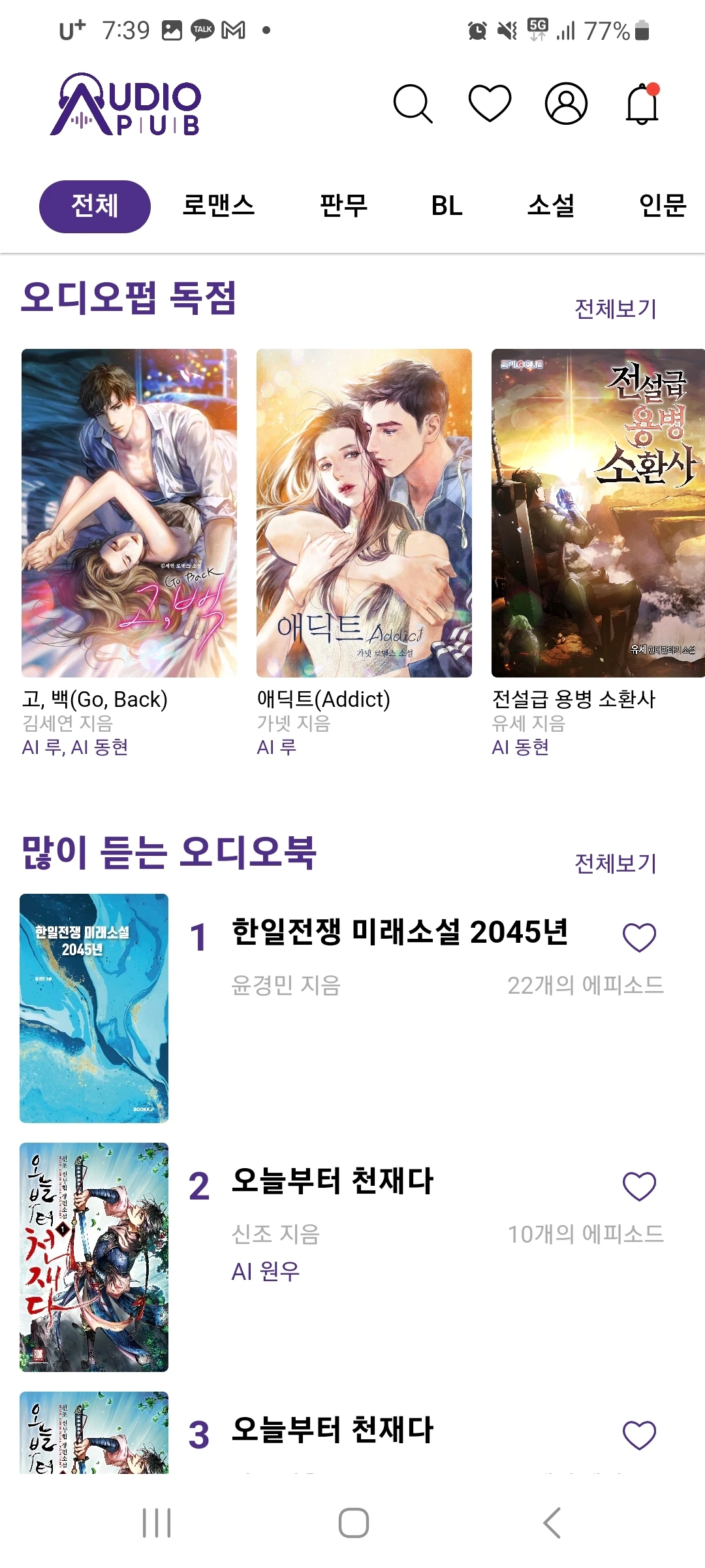 책에 시선을 고정해야 하는 독서 대신 귀로 듣는 시대 말이다. 오디오북 이야기다. 오디오북이 처음 나온 건 아니다. 이미 존재하고 있지만 AI, 인공지능의 발달로 대중화가 눈앞에 펼쳐지고 있다.