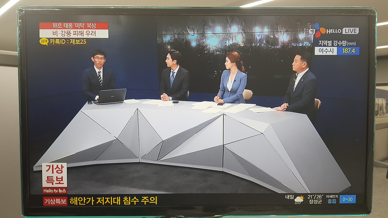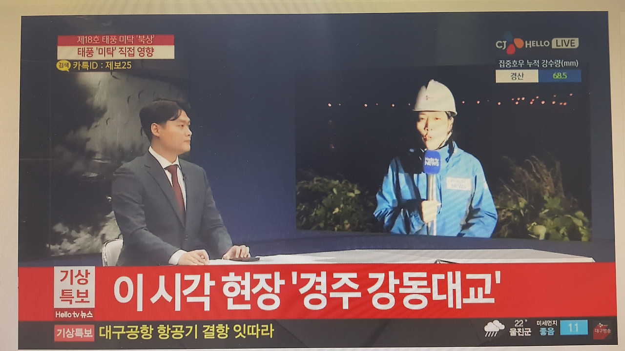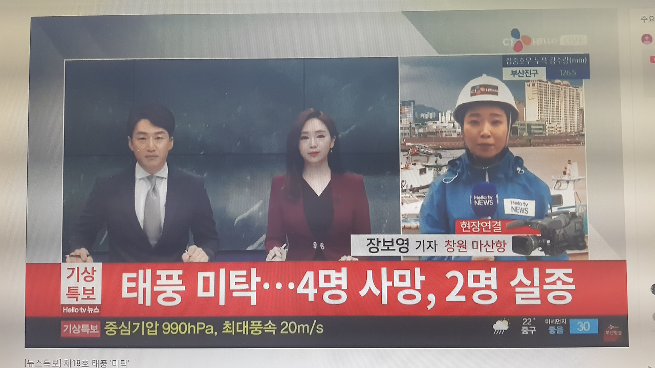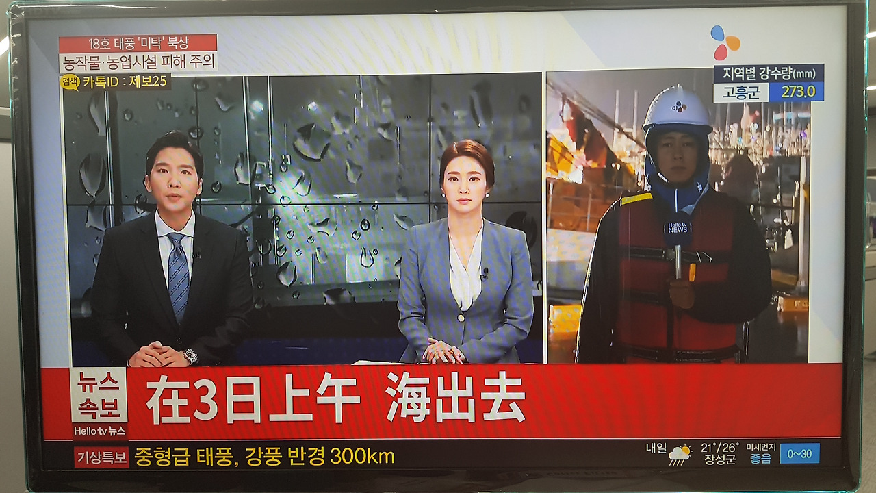 태풍 ‘미탁’의 관통은 예견된 일이었다. 2일 밤 목포에 상륙할 것이라는 예보에 CJ헬로 지역채널은 평상시처럼 특보 준비에 돌입했다. 호남미디어국(호남, 아라, 전북방송)을 시작으로 충남미디어국, 부경미디어국(부산, 경남, 가야방송), 경북미디어국(대구, 신라, 영남방송) 그리고 강원미디어국의 영동방송 등 총 11개 SO (지역 케이블방송사)와 상암동 본부에서 총 백여 명이 투입됐다.