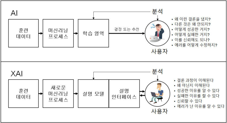 이를 해결하기 위해 'AI 설명가능성'(AI Explainability) 또는 'XAI'(eXplainable AI)라는 새로운 연구 분야가 등장했다. XAI의 목표는 AI의 의사결정 과정을 인간이 이해할 수 있는 형태로 제시하는 것이다. 그러나 더 복잡한 의사결정 과정, 특히 윤리적 판단이 필요한 경우에는 여전히 난제가 남아있다.