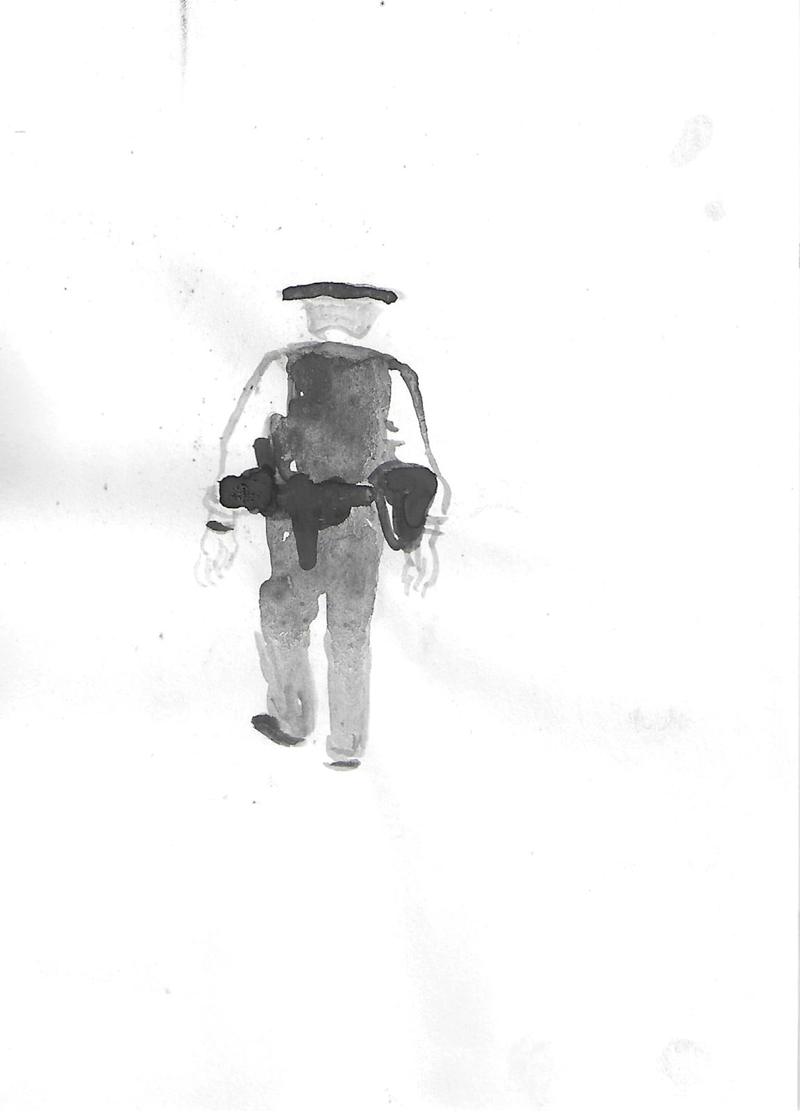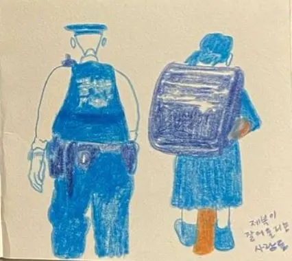 아까 내가 수많은 숫자와 글자를 띄운 전광판 앞에서 눈으로 내 화살표를 찾고 이게 맞나 두리번거리느라 주춤주춤 하던 자리에서 경찰은 거침없이 전광판 게이트를 통과했다. 허리춤에 무겁게 달린 경찰봉, 총, 무전기, 또 무언가 검은색 둔탁한 기기들이 내는 덜그럭 소리와 따각따각 광나는 구두 굽 소리가 무척 묵직하다는 생각을 하면서. 이 경찰은 뛰어서 도둑을 잡는 경찰은 아니겠구나.