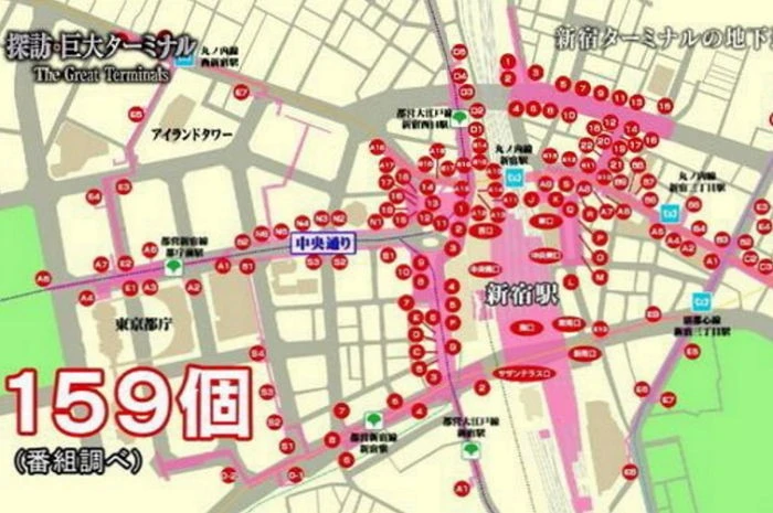 신주쿠역은 JR 노선이 16개라 환승 통로도 많아 출구가 159개라고도 하고 200개가 넘는다고도 한다. 그도 그럴 것이 먼저 동, 남, 서쪽으로 나뉘어 있고 거기서 각각 1, 2, 3, 4…. A1, A2, A3, B1, B2… 출구 안내판이 끝이 없다.