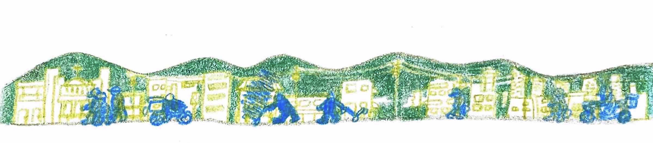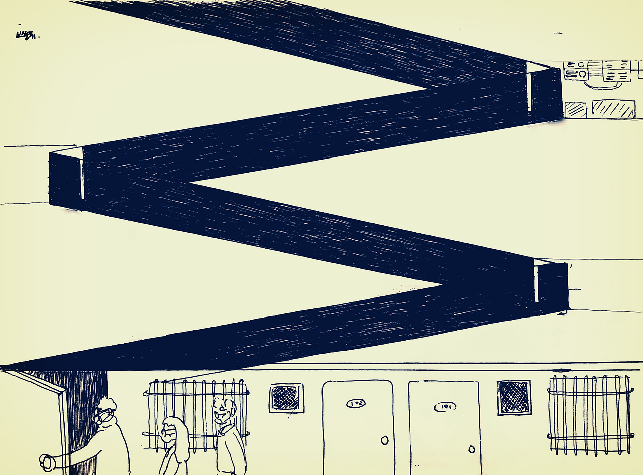 대문에서 안쪽 끝까지 들어가 현관문을 열고 2층 3층을 차례대로 올라가는데 아저씨가 불 켜는 스위치를 못 찾아서 어두운 통로를 벽을 더듬거리며 올라갔다. 문을 열고 가파른 계단을 열개쯤 올라가고, 긴 통로를 쭉 걷고, 길 끝에서 또 가파른 계단을 열 개 올라서 또다시 어두운 통로를 직진. 이걸 몇 번 반복해서 4층까지. 아직 오후인데 창문 없는 새까만 터널이 강렬했다. 분명히 2층 3층 통로를 걷는 동안 벽에 집 문이 있었을 텐데 전혀 기억이 안 난다.