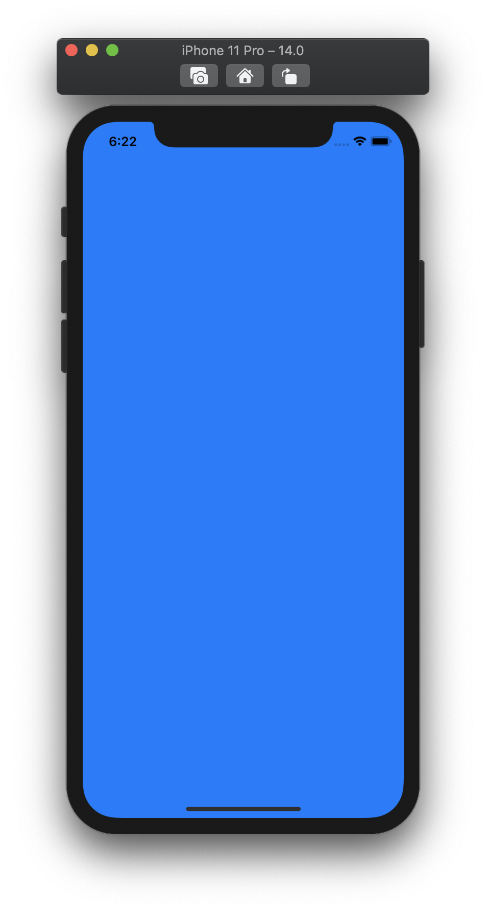 변경사항을 확인하기 위해선 왼쪽 위에 있는 재생 버튼을 눌러 앱을 재실행시켜야 합니다. 이제 배경색이 파란색으로 변경된 것을 확인할 수 있습니다.